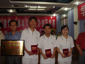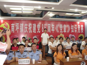 2006年6月12日下午,為慶祝中國共產黨建黨85周年,重慶市南岸區南坪鎮黨委開展了《黨章》知識競賽。我公司黨委選派周隼、趙偉、劉伶伶三位同志參加了比賽,經過激烈的必答題、搶答題和風險題3輪競爭,最后取得了二等獎。